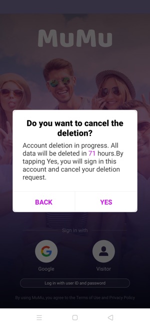 Alternatively, you can contact us at the email address mumuteamsc@gmail.com and request account deletion. Please note that it may take up to three working days for us to verify your request and proceed with deleting your account.